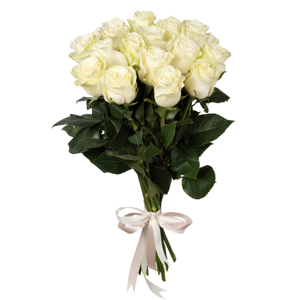Изысканный букет из белоснежных роз — воплощение невинности и благородства.