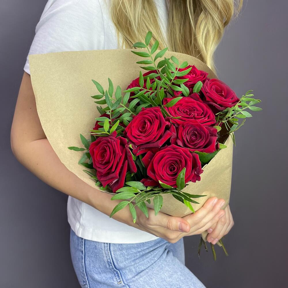 Букет из 7 красных роз в крафте – страсть в стильной упаковке