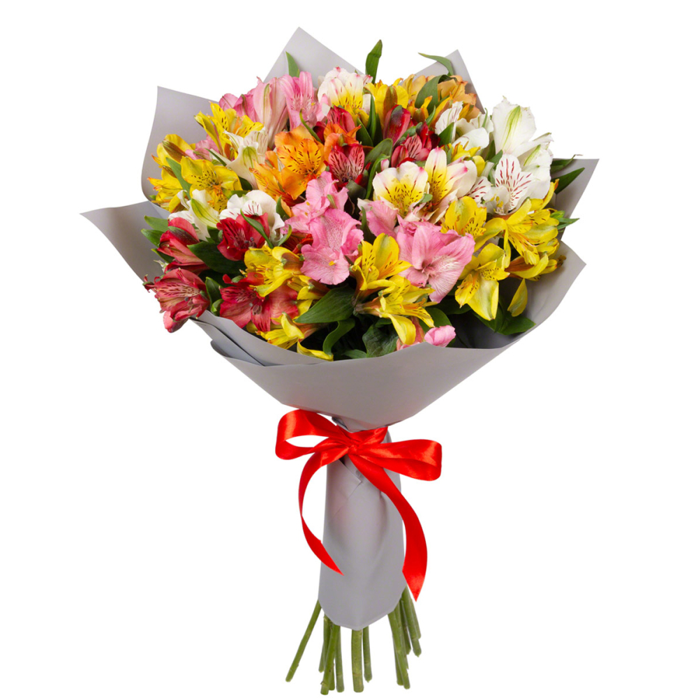 Яркий букет «Рассвет» из разноцветных альстромерий — это взрыв красок и эмоций! Нежные цветы, напоминающие миниатюрные лилии, с причудливыми узорами на лепестках станут идеальным подарком другу, коллеге или любимому человеку. Альстромерия купить в Тихвине.