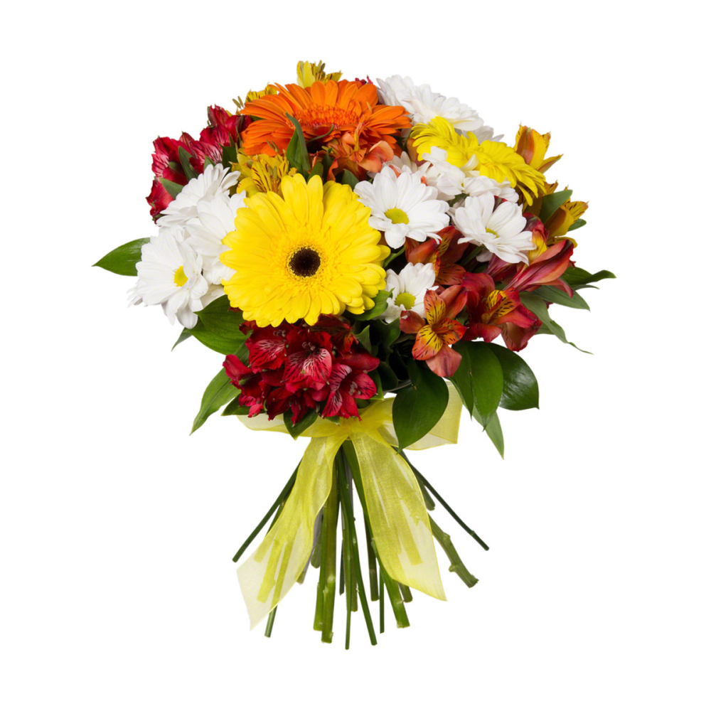 Букет Средний «Красочный фонтан» — яркая симфония из альстромерий, гербер и хризантем