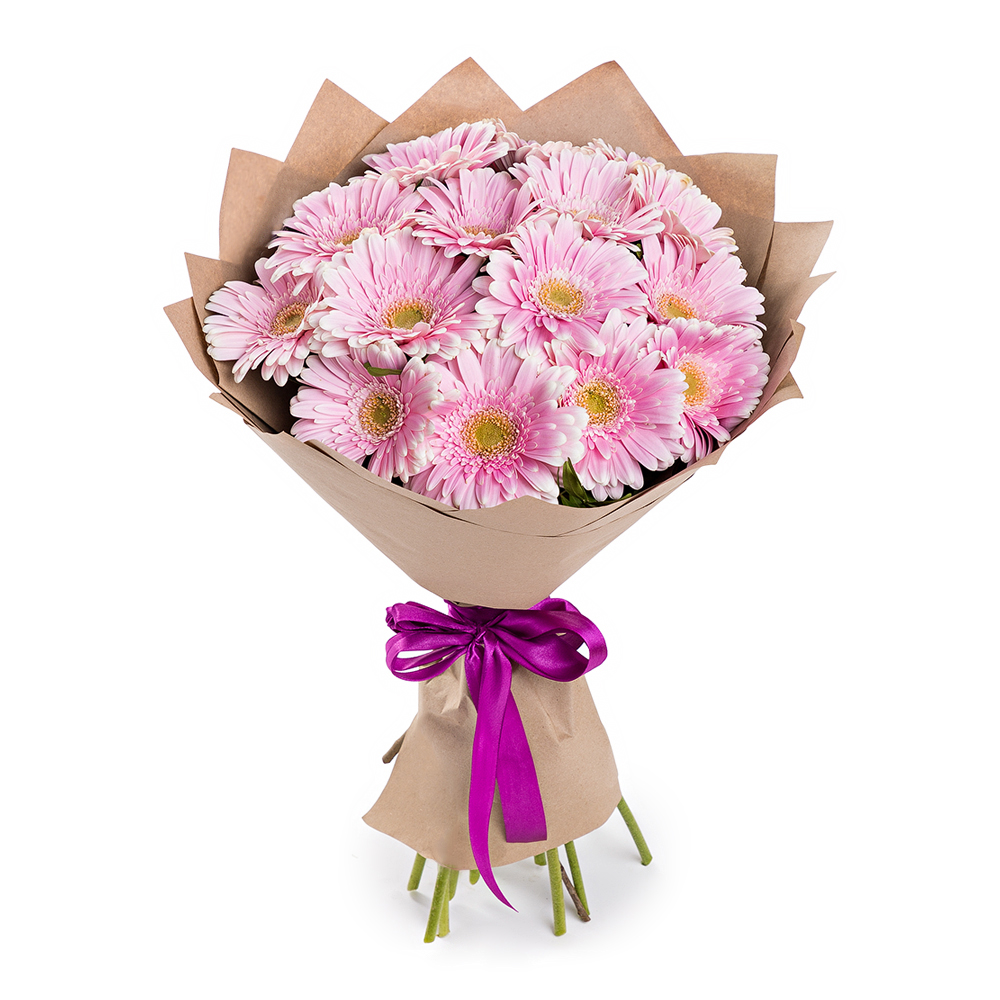 Очаровательная композиция из 15 свежих розовых гербер — идеальный способ выразить нежные чувства.