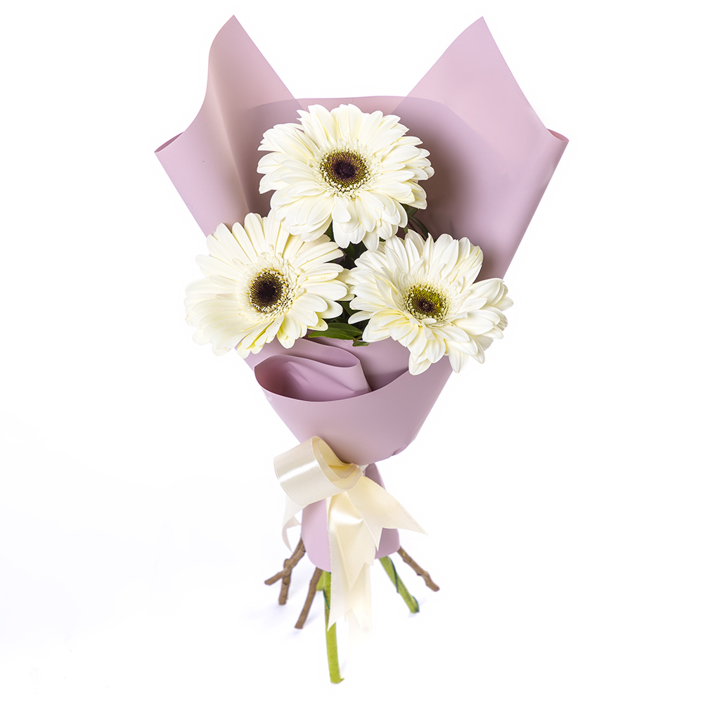 Нежный букет из 3 белых гербер – символ искренности и света