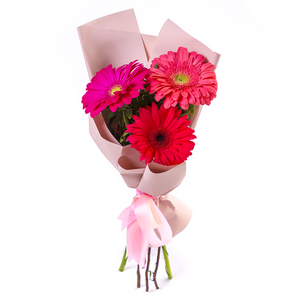 Яркий букет из 3 разноцветных гербер – маленькое чудо в ваших руках