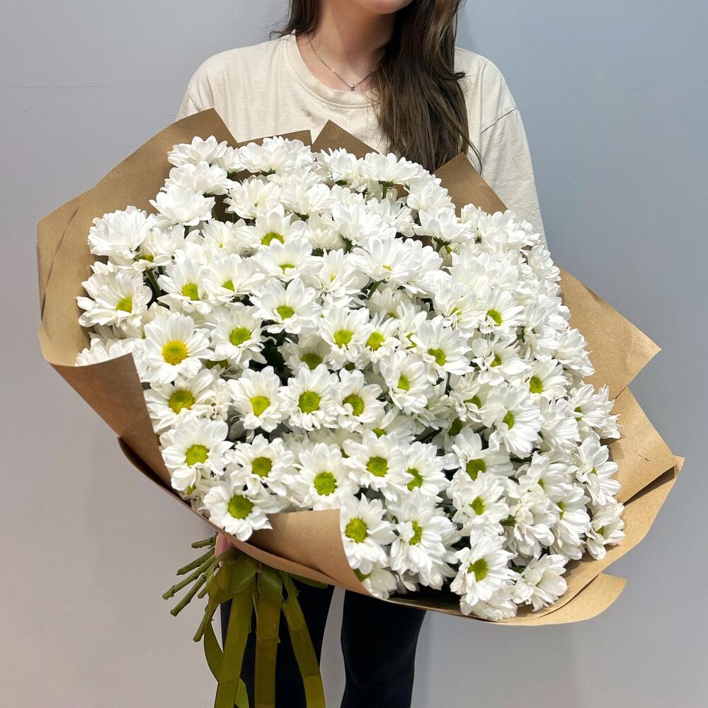 Букет «21 ромашка» – нежные белые кустовые хризантемы в натуральном стиле