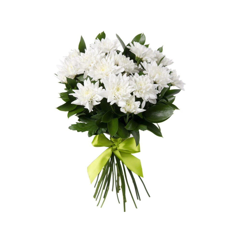 Нежный букет из белоснежных хризантем «Белый ангел» воплощает чистоту и совершенство.