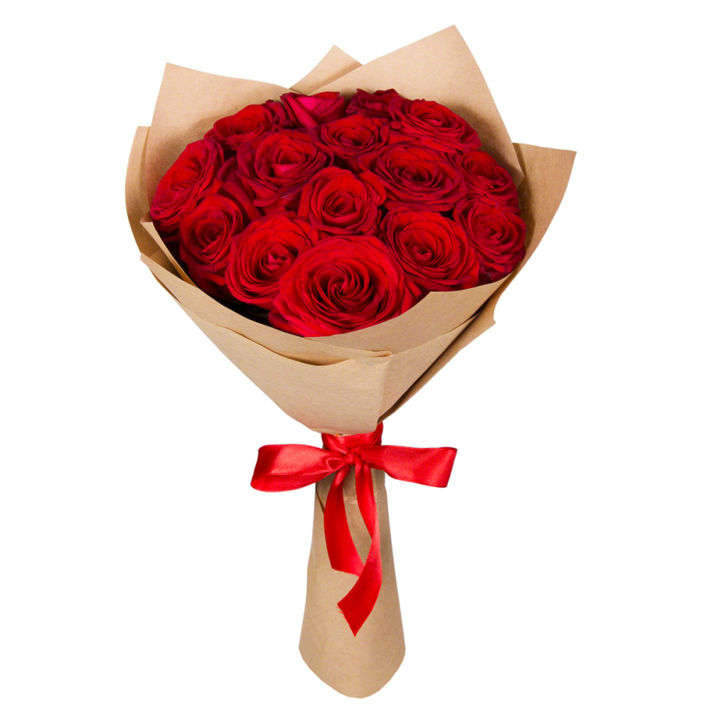 Подарите страсть и нежность с элегантным букетом из красных роз в стильной крафтовой упаковке.